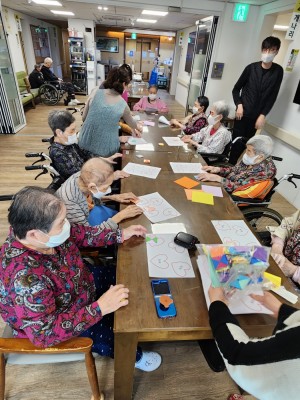 맞춤형 인지프로그램 딱지만들기 및 소망 이루기 페이지 정보 작성자 관리자 댓글 0건 조회 232회 작성일 24-01-19 17:39 본문 어르신들께 색종이를 나눠드려 딱지를 만드셨습니다. 직접 만드신 딱지에 소망 4가지가 적힌 판과 함께 소망이루기 프로그램도 같이 진행하셨습니다. 어르신들께서 하기 힘들어하시면 저희 선생님들이 옆에서 도와주셔서 다같이 프로그램을 완성하셨습니다. 목록 이전글복주머니 만들기 24.01.23 다음글교구를 이용한 의자 맞추기 프로그램 24.01.19 댓글목록 댓글목록 등록된 댓글이 없습니다.